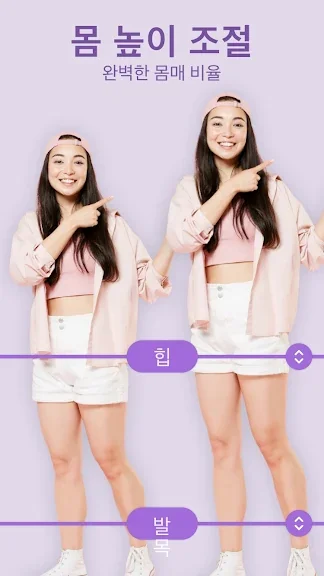 가슴 확대, 힙 업, 얼굴 작게 만들기 및 허리 가늘게 만들기로 몸매를 고쳐보세요. 키 보정 도구로 키를 늘릴 수도 있습니다. 날씬하게 만들기 도구로 몸매를 마르고 날씬하게 만들어보세요.