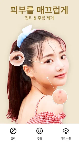 -잡티와 여드름 제거. 시도해 볼 수있는 훌륭한 사진 편집기 피부 보정. 이 셀카 카메라로 사진을 아름답게 보이게 하는 것은 쉽습니다.