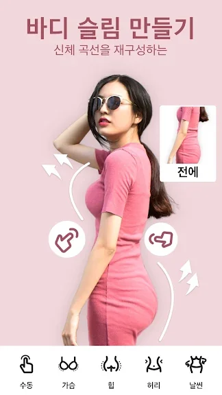 -바디 모양 변경 : 슬림하고 스키니. 강력한 리터치 도구와 바디 체인저가 준비되어 있습니다.