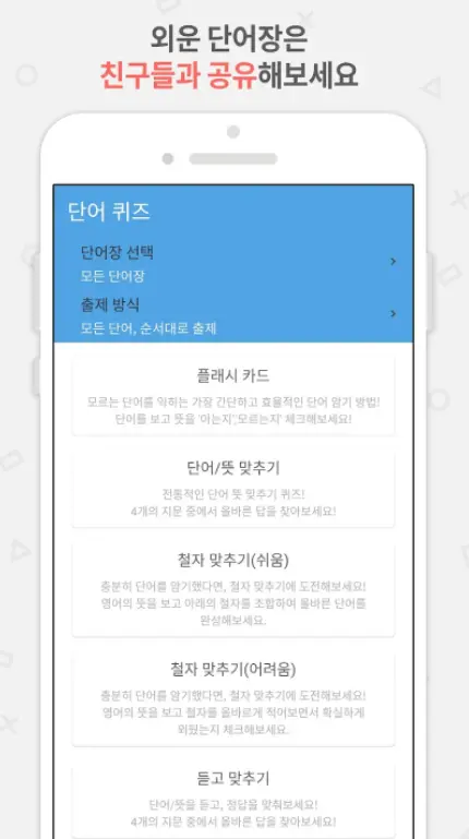 - 내가 만든 단어장을 공유하면서 다른 사람과 학습 시너지를 낼 수 있어요.