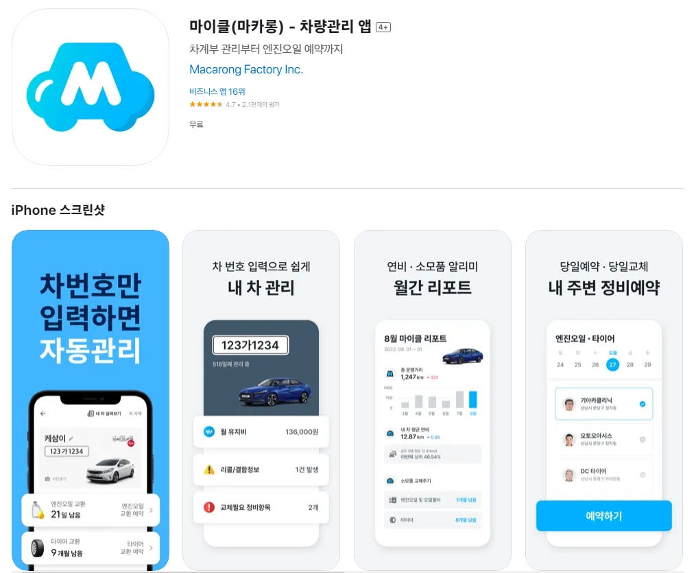 1) 아이폰 마이클(마카롱) - 차량관리 앱 4+ 어플 소개