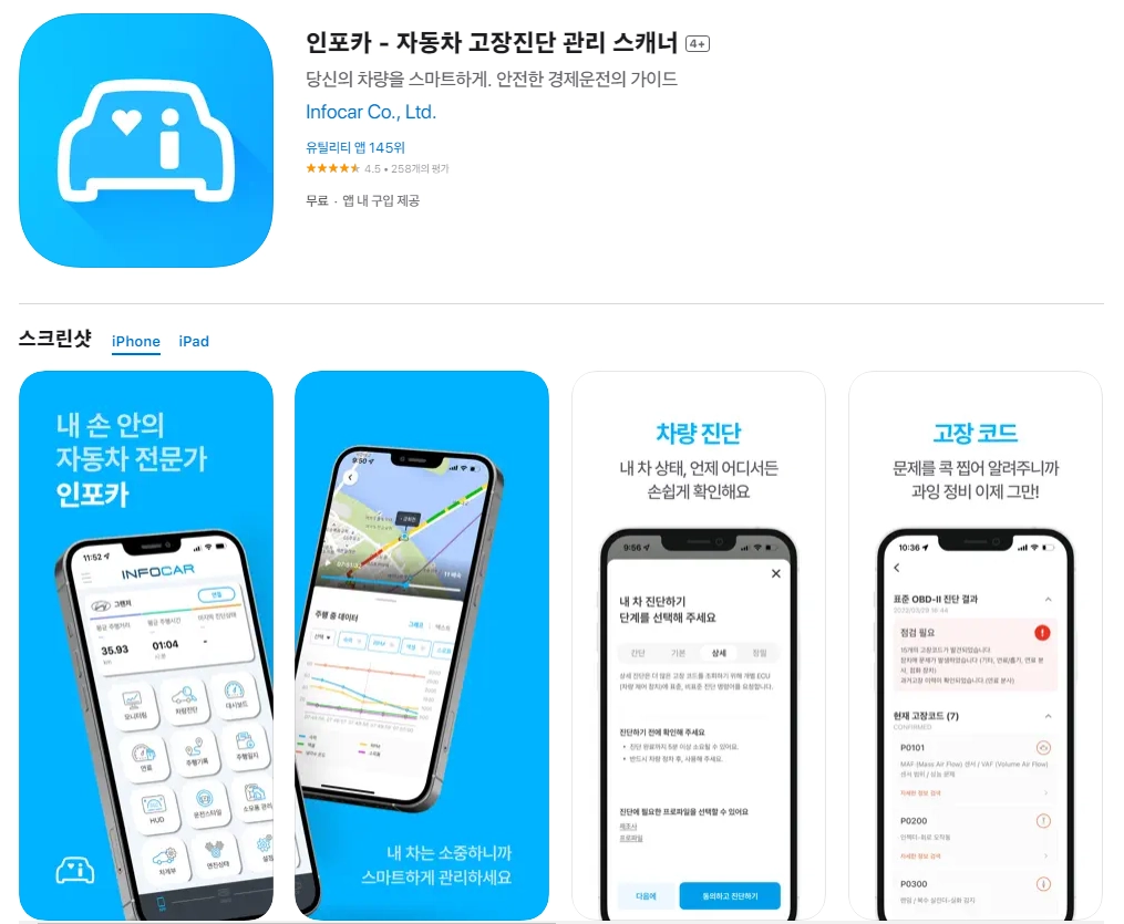 아래는 아이폰 인포카 - 자동차 고장진단 관리 스캐너 4+ 어플에 대한 자세한 설명입니다. 참고하세요.