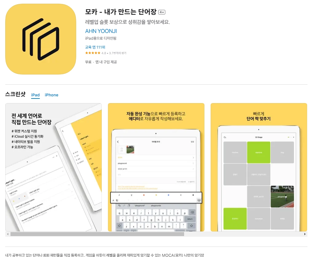 2. 아이폰 모카 - 내가 만드는 단어장 4+ 앱