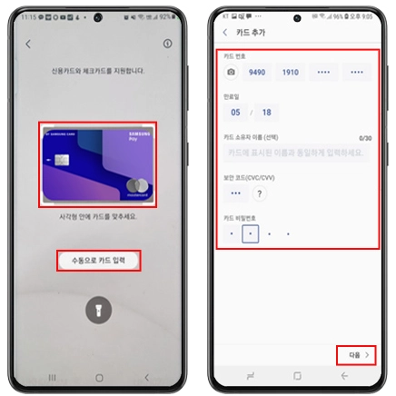 ⑥ 카드 정보 입력 후 [다음]