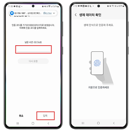 ⑨ 인증번호 입력