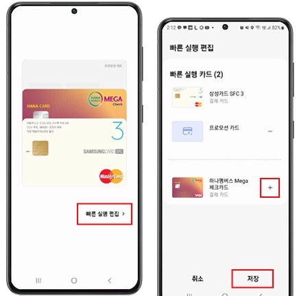 ⑤ 빠른 실행창에 카드 추가 완료